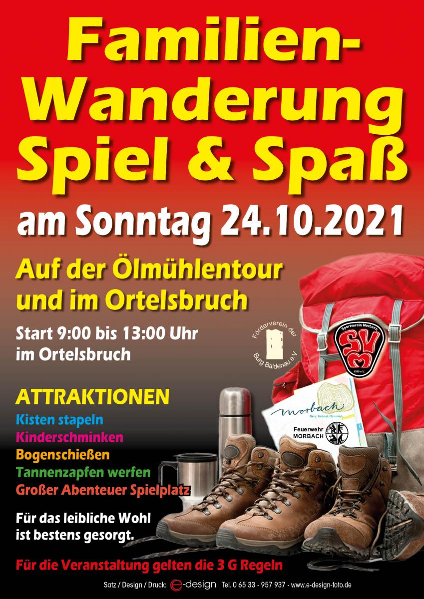 Der SV Morbach ist am Sonntag, 24. Oktober 2021 Gastgeber der Familien-Wanderung mit Spiel & Spaß für jedermann. Ob Familie mit oder ohne Kind(er), Einzelpersonen, Gruppen, ob Alt oder Jung, für alle wird an diesem Sonntag was geboten.