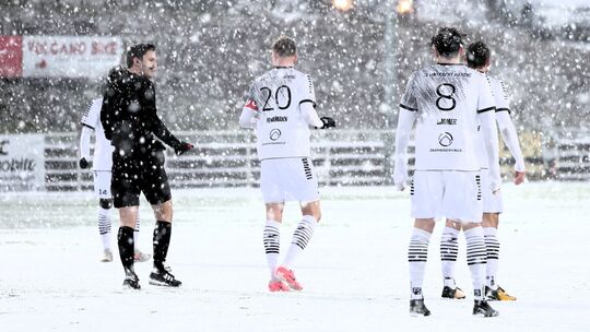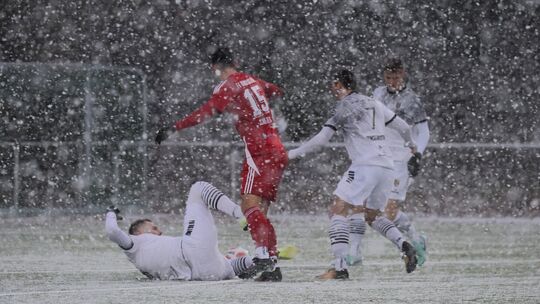 Am Ende war das Schneetreiben zu dicht und den Platz in Mendig nicht mehr zu spielen. Die Rheinlandliga-Partie gegen Morbach musste abgebrochen werden, beim Stand von 3:1 für die Gäste, die gerne weitergespielt hätten.